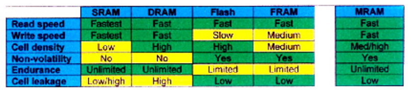 表格1 MRAM與其他內存技術相比具有相對優勢