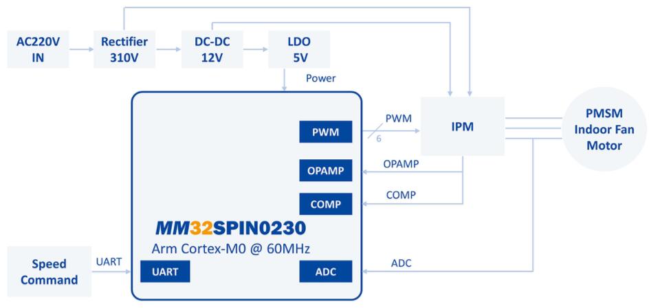 低成本32位單片機MM32SPIN0230空調內風機方案