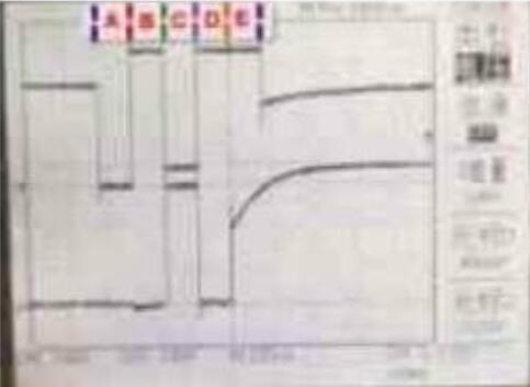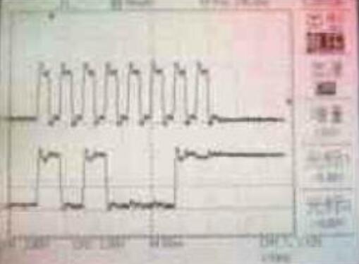 將示波器的通道1連接到寫使能信號,通道2連接到數(shù)據(jù)端D7。如圖1 所示,上方的波形為通道1接收的數(shù)據(jù),下而的波形為通道2接收的數(shù)據(jù)。設(shè)計(jì)輸入向量測試,當(dāng)?shù)刂窞镺OO時(shí),將片選端CS置為低電平,圖1 中,A區(qū)WT=*0”,RD=“1“,RD= “0”,讀出寫入數(shù)據(jù) 為“0”; B區(qū)WT=“1”,數(shù)據(jù)為“0”; C 區(qū)WT=“0”,RD=“1”,寫入數(shù)據(jù)為“1”D 區(qū)WT-“1”,RD-“1”,為了更好地觀察讀出“1”時(shí)端口的電平變化,該段不進(jìn)行讀寫,在輸出端口上加弱的低電平信號; E區(qū)WT=“1”,RD=“0”,讀出數(shù)據(jù)為“1”,可明顯地看到讀出數(shù)據(jù)“1”的過程。從圖中可以看到數(shù)據(jù)“0”和“1”被成功地寫入和讀出。