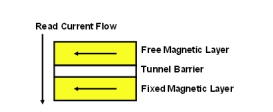 存儲位的置“0”狀態或置“1”狀態正是由自由層的極性來確定的。自由層極性和固定層極性一致時(指向相同方向),穿越MTJ棧層的阻抗很低(請參閱圖1)。自由層極性和固定層極性180度相反時(指向相反方向),穿越MTJ棧層的阻抗就很高(請參閱圖2)。由MTJ堆棧中的低阻抗和高阻抗來確定是否將位元讀為“0”或“1”。